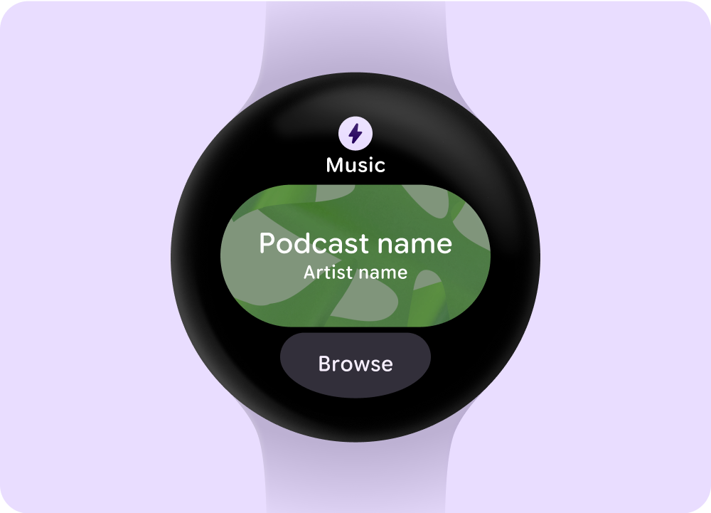 Android users engage with different media types, such as music, podcasts, audiobooks, and radio. Design apps that allow users to quickly access media on their watch. On the watch, prioritize ease and speed of interactions, because users spend much less time interacting with their watch than their phone or tablet.
